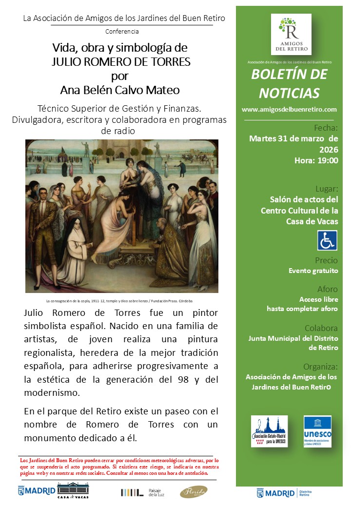 Los Jardines del Buen Retiro pueden cerrar por condiciones meteorológicas adversas, por lo que se suspendería el acto programado. Si existiera este riesgo, se indicaría en nuestra página web y en nuestras redes sociales. Consultar al menos con una hora de antelación