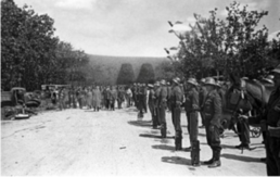 El general José Miaja, el mayor Juan de Pablo Janssen y otras autoridades militares republicanas, (al fondo), pasan revista a unidades de la 21ª Brigada Mixta durante un acto en el madrileño Parque del Retiro. Madrid Mayo 1937